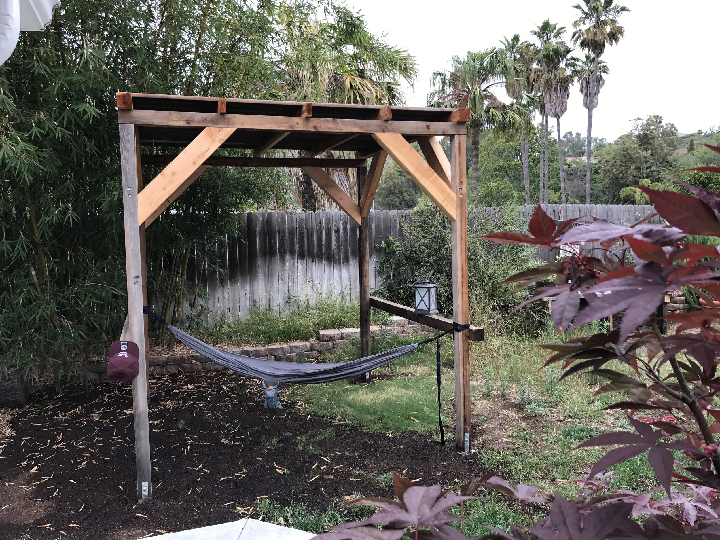This was a fun build. 4x4s from the tree house, redwood decking from my neighbors back yard, and a few new 4x6s… this Cabana used up most of my wood pile at the time, and became my all time favorite place to relax. I flipped the redwood decking when I installed it on the roof, which lets you see the natural beauty of years of use. Hook the hammock up, lay back, and gaze up at the reclaimed joy of scuffs, dings, screw holes and time.